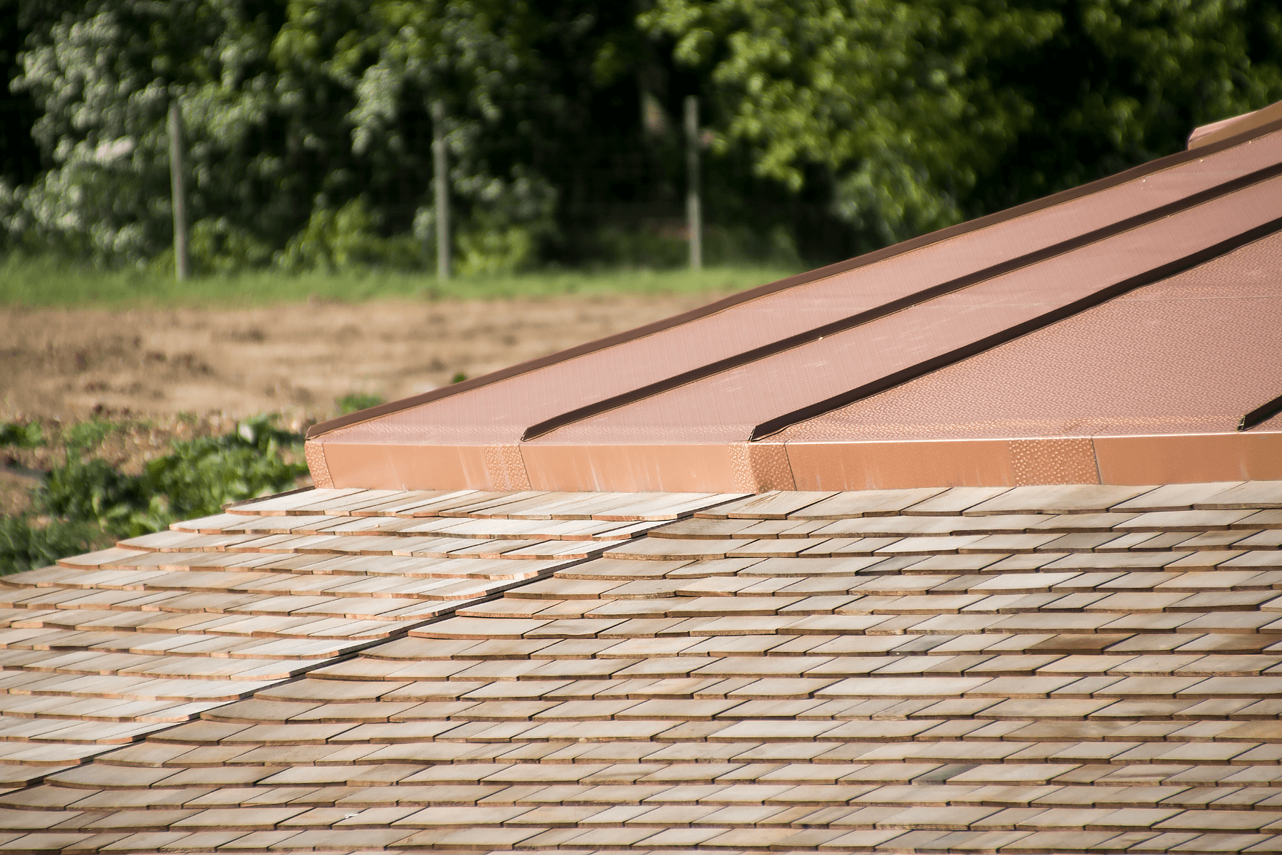 The Woodland Cemetery Prayer Hall in Cheshunt was an octagonal roof comprising a timber structure with Renolit Alkorplan coloured PVC membrane with a Cedar shingle roof to the lower sections, allowing contemporary design and waterproofing to blend with the rustic and traditional timber look.